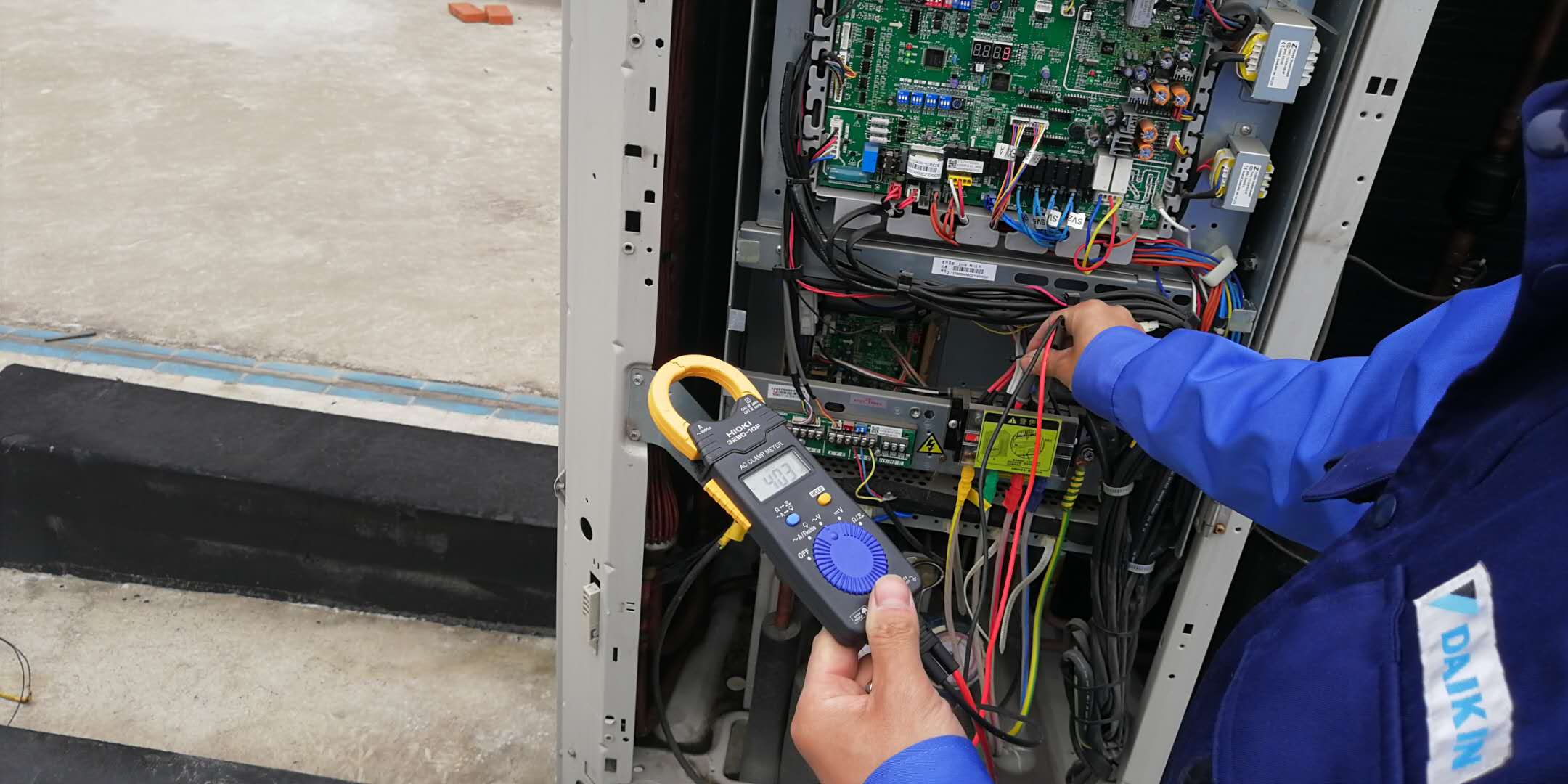 項(xiàng)目?jī)?nèi)容:本次共保養(yǎng)室外機(jī) VRV2臺(tái)、室內(nèi)機(jī)4臺(tái),現(xiàn)場(chǎng)空調(diào)系統(tǒng)已經(jīng)使用15年。經(jīng)過(guò)專業(yè)SE通過(guò)專業(yè)設(shè)備的點(diǎn)檢、檢查,能診斷機(jī)組目前的運(yùn)行工作狀況,并能及時(shí)發(fā)現(xiàn)可能存在的一些故障隱患,及時(shí)防范于未然,保證設(shè)備的可靠運(yùn)行,降低客戶使用成本。